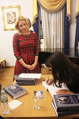 Затем автор книги Елена Ковальская рассказала о процессе создания монографии и ознакомила слушателей с несколькими неизвестными широкому кругу лиц фактами из жизни преподобномученицы Великой княгини Елисаветы Феодоровны.