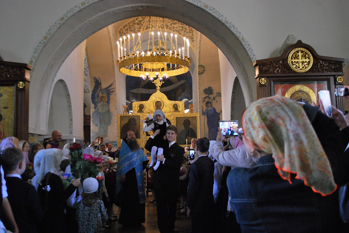 Торжественным продолжением богослужения стала праздничная линейка, во время которой отец Артемий обратился ко всем присутствующим со словами приветствия и поздравления. Протоиерей Артемий также напомнил об ожидаемых изменениях в системе школьного образования, связанных с назначением на пост министра образования России доктора исторических наук Ольги Васильевой.