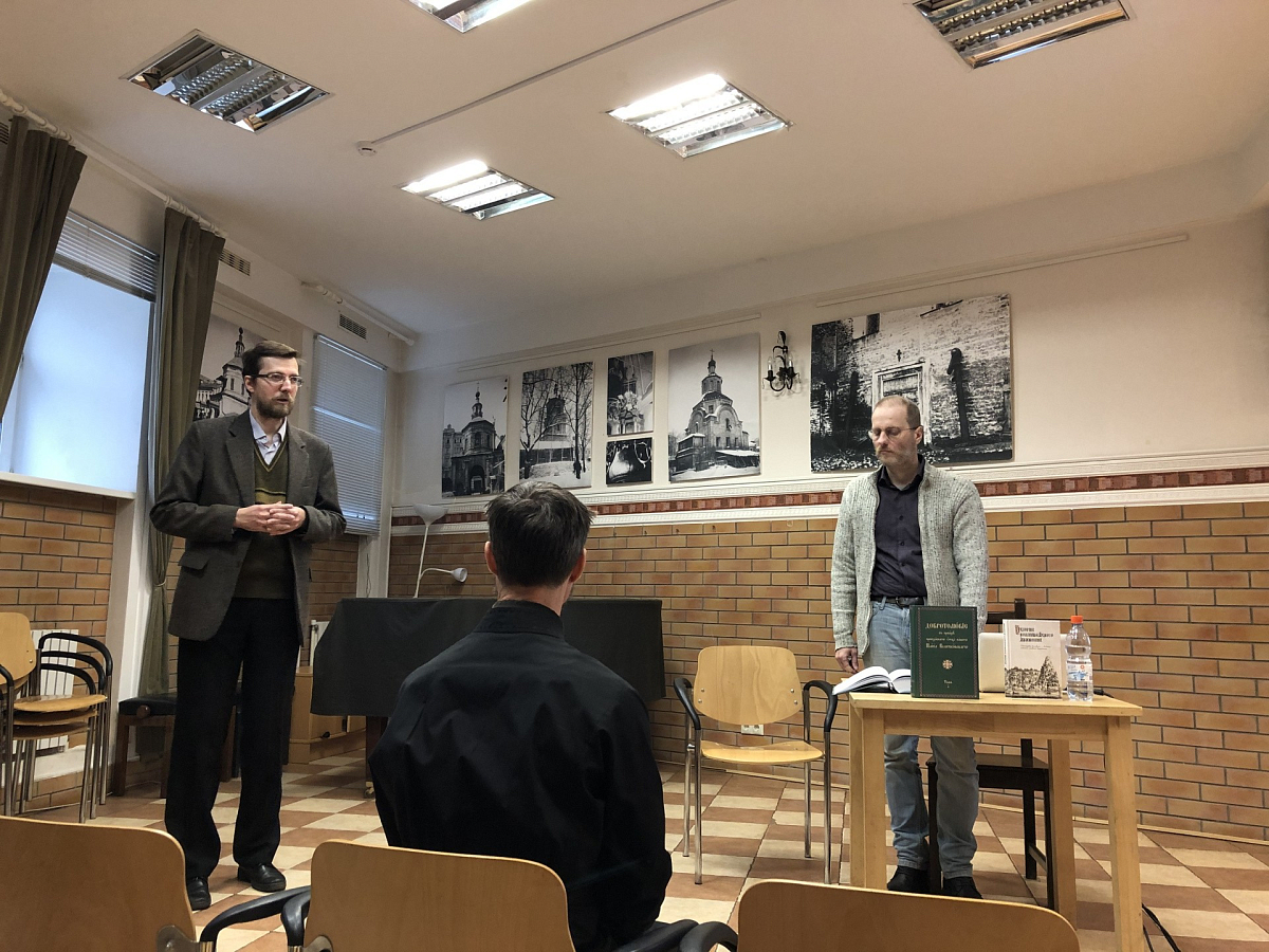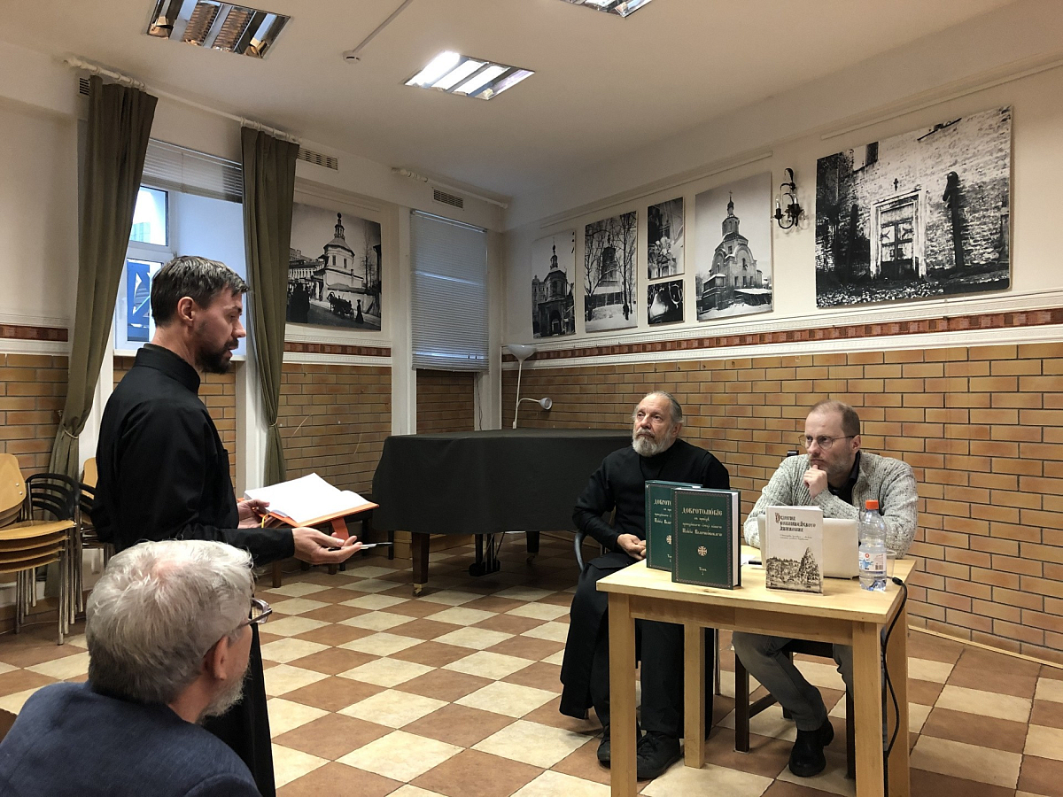 Затем выступил составитель второй представленной книги священник Феодор Калинин, много лет уже занимающийся собиранием и переводом материалов о греческих колливадах – представителях духовного движения эпохи турецкого владычества. Самыми знаменитыми из колливадов, несомненно, были святитель Макарий (Нотара), митрополит Коринфский, и преподобный Никодим Святогорец. Книга, подготовленная отцом Феодором Калининым, ценна, прежде всего, тем, что в ней публикуется житие св. Макария Коринфского, составленное знаменитым греческим славистом, знатоком истории Афона Константином Папулидисом, и житие преподобного Никодима Святогорца, написанное его собратом по постригу иеромонахом Евфимием буквально через два года после кончины знаменитого афонского подвижника. В книге представлены и другие интересные тексты, посвященные истории движения колливадов, – все они впервые публикуются на русском. Отец Феодор Калинин рассказал о составе сборника, представил фотографии видных святогорцев конца XX – начала XXІ вв., с которыми издателю довелось встретиться и сочинения которых были использованы им в представленной публикации и других работах.