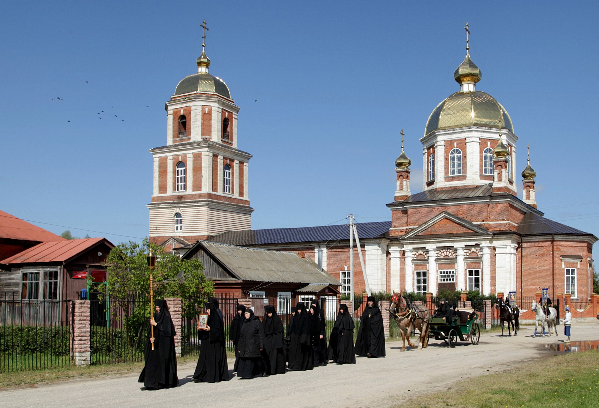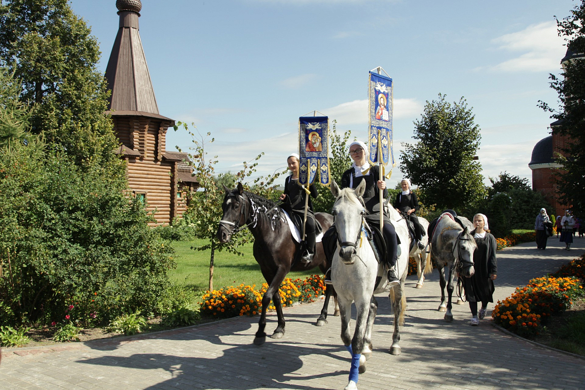 По окончании Литургии состоялся праздничный молебен с крестным ходом, в котором приняли участие не только многочисленные гости и прихожане, но и монастырские лошади, с которыми уверенно управлялись воспитанницы монастырского пансиона.