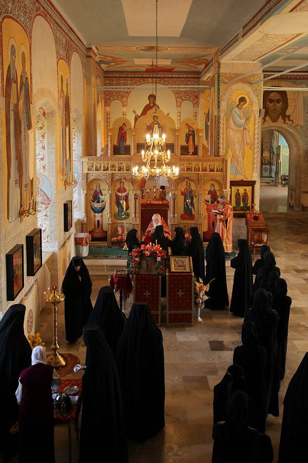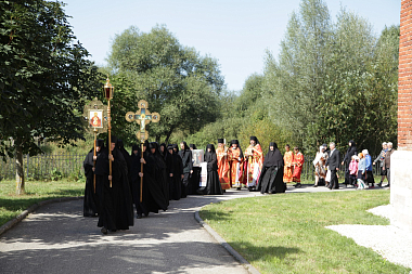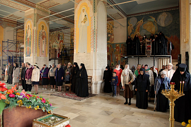 За богослужением молились настоятельница обители игумения Неонилла (Фролова) с сестрами и воспитанницами «Службы помощи семье и детям» и игумения Антония (Минина), настоятельница Свято-Троицкого Александро-Невского ставропигиального женского монастыря в с. Акатове Московской области.