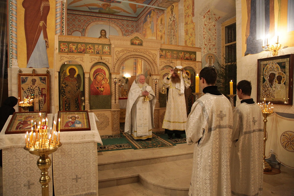 Рождественское богослужение в Никольском храме возглавил клирик Никольского монастыря иерей Владимир Постников в сослужении клириков Заиконоспасского ставропигиального мужского монастыря г. Москвы иеромонаха Наума (Саломатина) и иеродиакона Саввы (Буханцева).