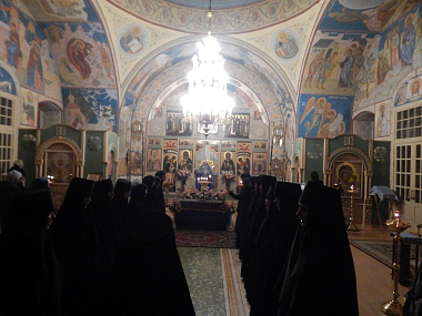 Накануне всенощное бдение в Никольском храме обители возглавил клирик монастыря протоиерей Владимир Постников в сослужении клирика Заиконоспасского ставропигиального мужского монастыря иеромонаха Саввы (Буханцева).