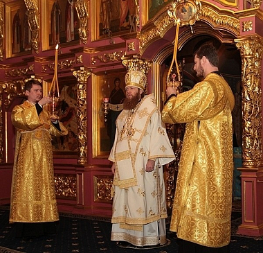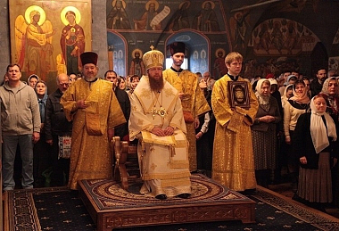 Его Преосвященству сослужила братия обители в священном сане.