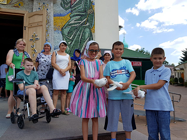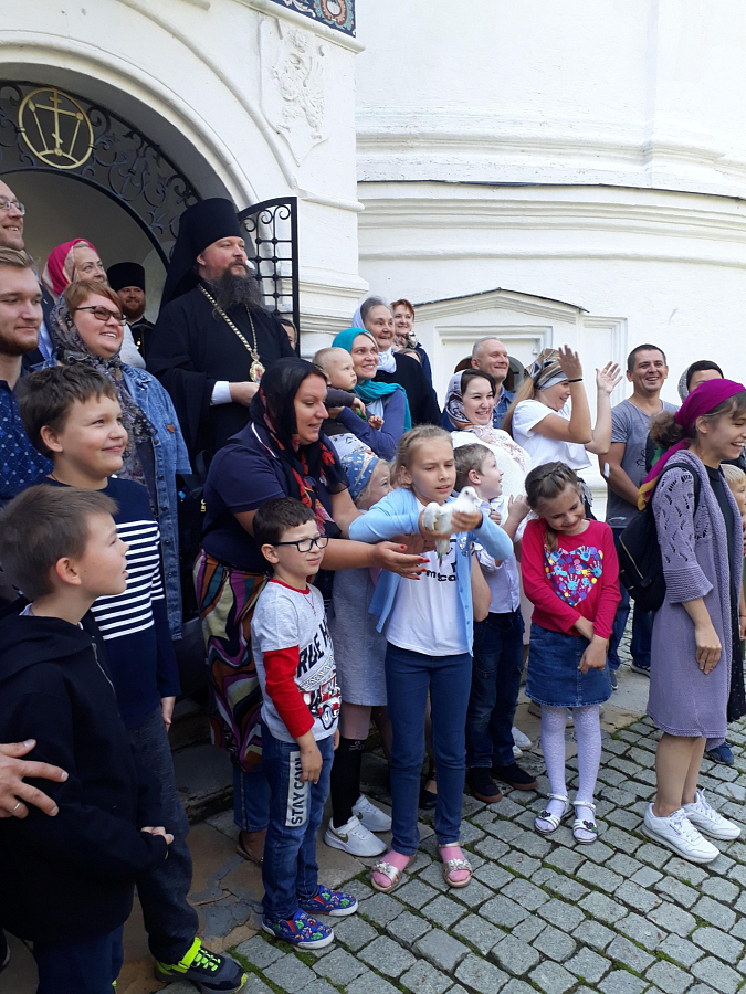 По окончании молебна была сделана общая фотография на память и под возглас «Христос воскресе!» в небо детьми выпущены белые голуби.