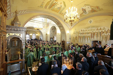 Накануне наместник монастыря епископ Можайский Леонид, викарий Святейшего Патриарха Московского и всея Руси, совершил в Введенском соборе в сослужении братии обители в священном сане малую вечерню с чтением акафиста прп. Амвросию Оптинскому перед ракой с его святыми мощами.