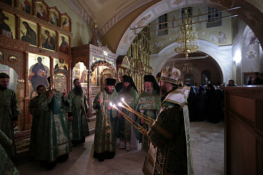 Одну из поздних Литургий возглавил епископ Россошанский и Острогожский Андрей в сослужении братии монастыря в священном сане и клириков Россошанской епархии.