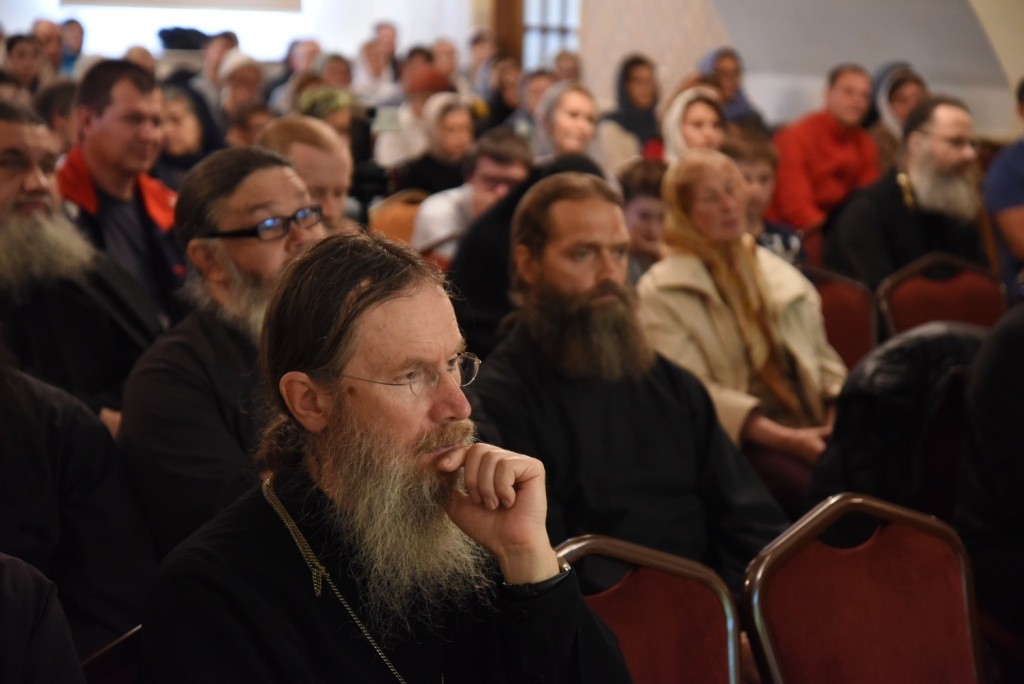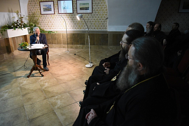 Не менее интересной частью прошедшей лекции стало общение Владимира Алексеевича с аудиторией, которую на этот раз составили насельники монастыря во главе с наместником епископом Леонидом и старшей братией, оптинские паломники, а также специально приехавшие на встречу более тридцати молодых людей из православных приходов Москвы – участники молодежной организации «Покров», многие из которых уже неоднократно бывали в Оптиной пустыни.