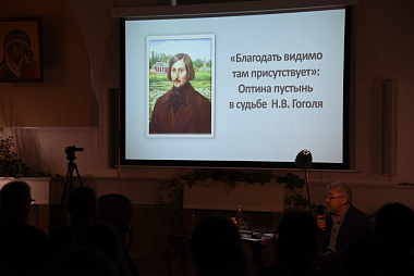 Что касается Гоголя, то в самом названии лекции «"Благодать видимо там присутствует": Оптина пустынь в судьбе Н.В. Гоголя» − слова писателя, обращенные к графу А.П. Толстому, ясно отражают его отношение к знаменитому монастырю.