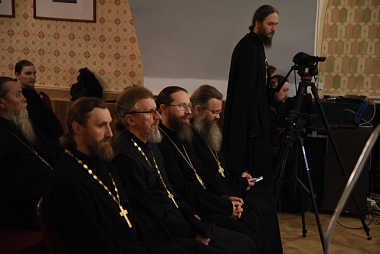 Воропаев кратко поделился воспоминаниями о своих первых посещениях монастыря в 1980-х годах, еще не переданного Церкви, − на его глазах прошла вся новейшая история возрождения Оптиной; как университетский педагог, он привозил в обитель своих студентов, некоторые впоследствии избрали монашеский путь и даже стали игуменами.