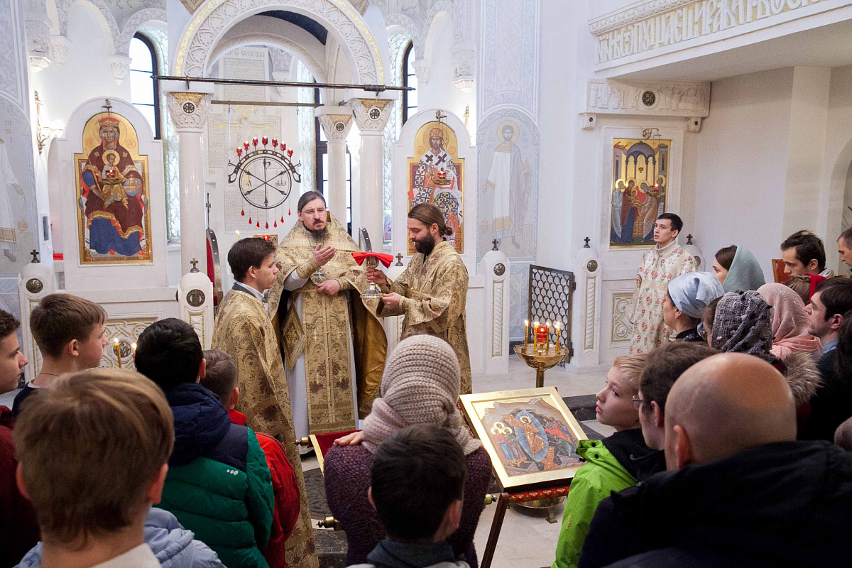 За богослужением пономарили участники диаконского кружка, песнопения исполнял Молодежный хор, молились и причащались Святых Христовых Тайн участники многочисленных проектов Центра, прихожане храма и все желающие.