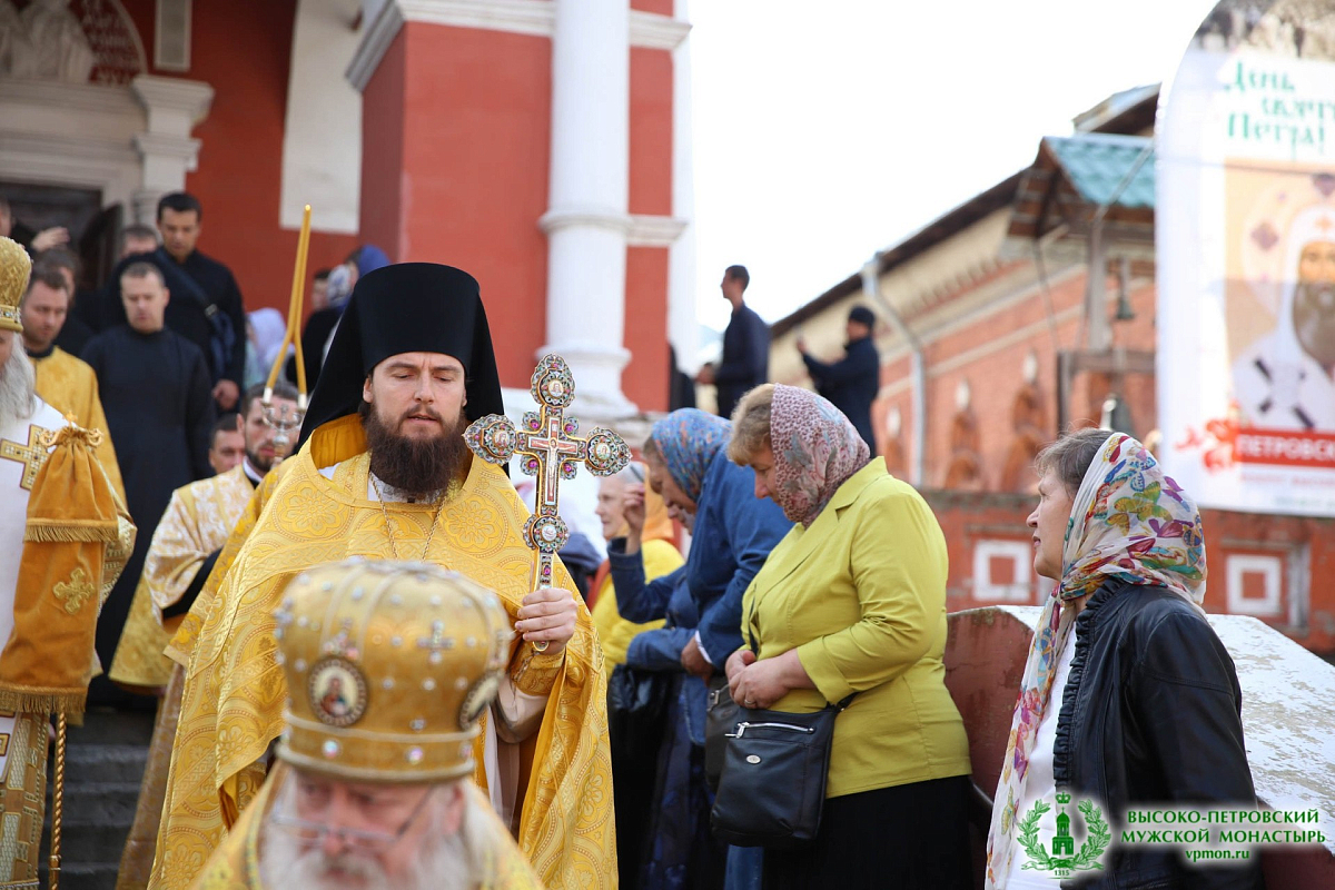 По окончании Литургии вокруг Высоко-Петровской обители по улице Петровке прошел Петровский крестный ход с чтимой иконой святителя Петра, во время которого прихожане и паломники монастыря прикладывались к иконе святителя Петра с частицей его честных мощей.