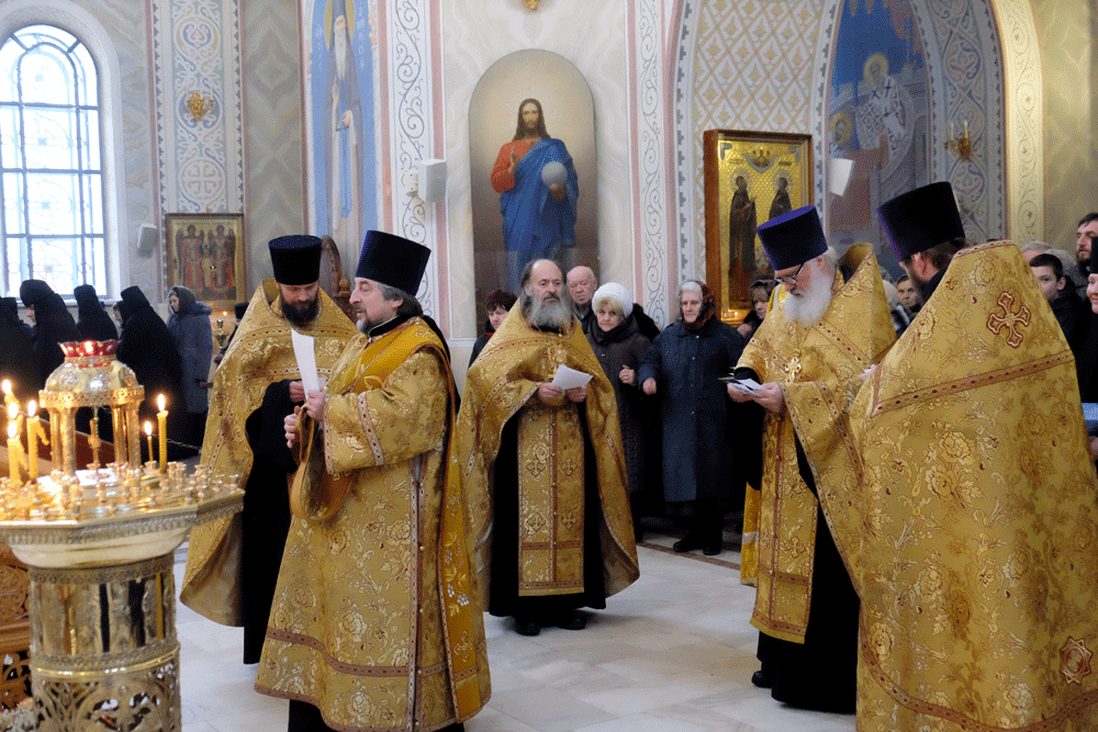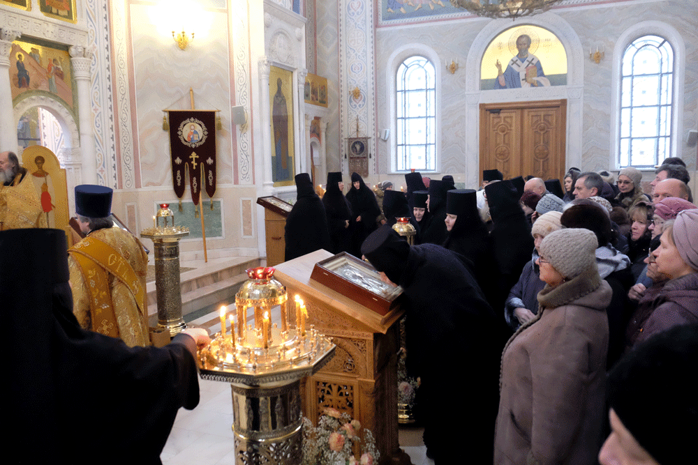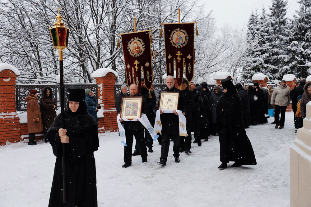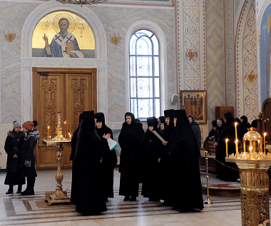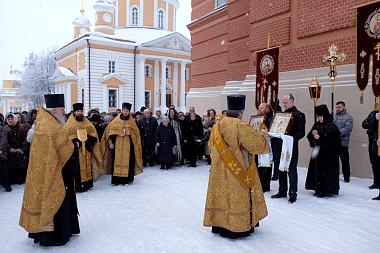 В обители были совершены две Божественных литургии: ранняя в Покровском соборе и поздняя в Никольском соборе монастыря, а также праздничный молебен с крестным ходом.