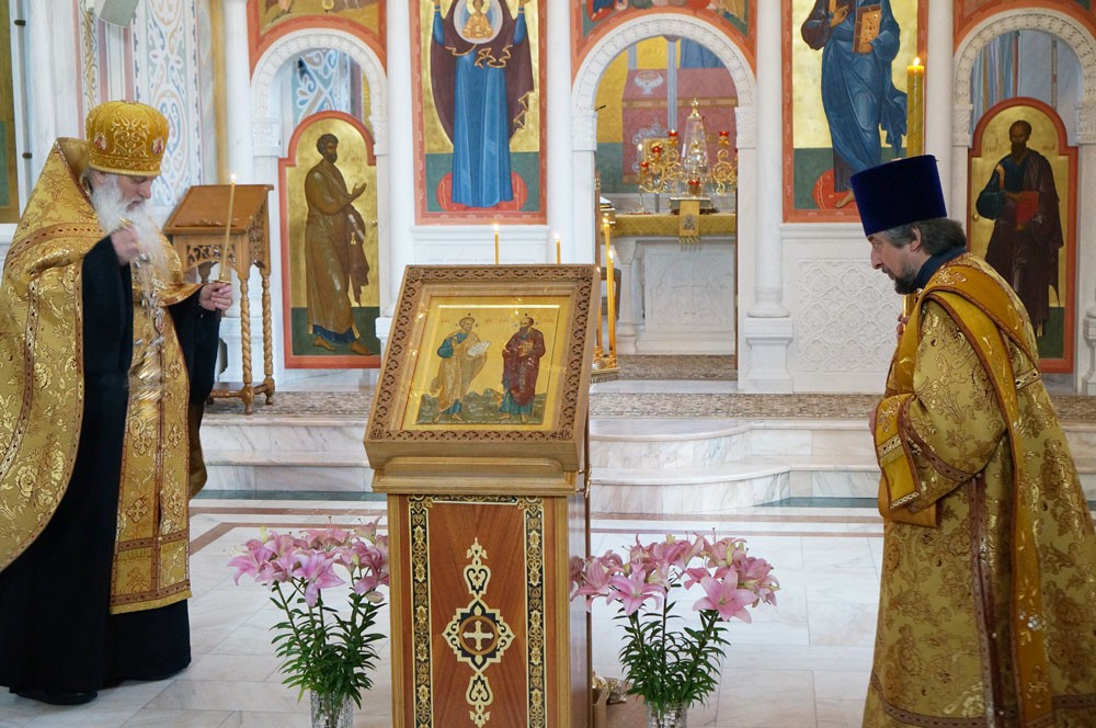 Праздничная Божественная литургия была совершена в Никольском соборе обители в приделе святых апостолов.