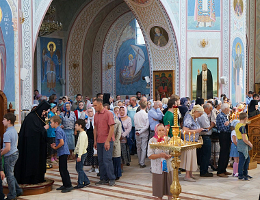 По окончании литургии и крестного хода настоятельница монастыря игумения Олимпиада (Баранова), архимандрит Амвросий (Кравчук), духовник обители и прихожане поздравили с днем тезоименитства клирика монастыря иерея Павла.