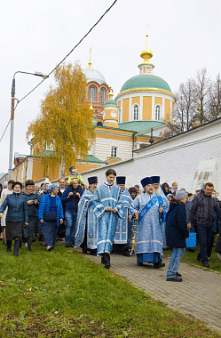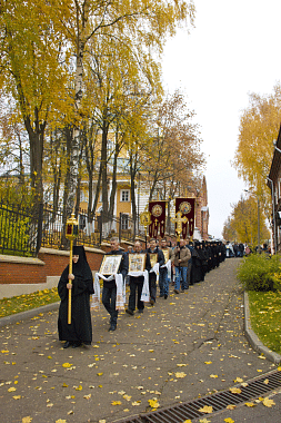 По окончании поздней Божественной литургии по традиции был отслужен молебен с крестным ходом вокруг монастыря.