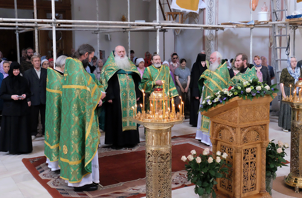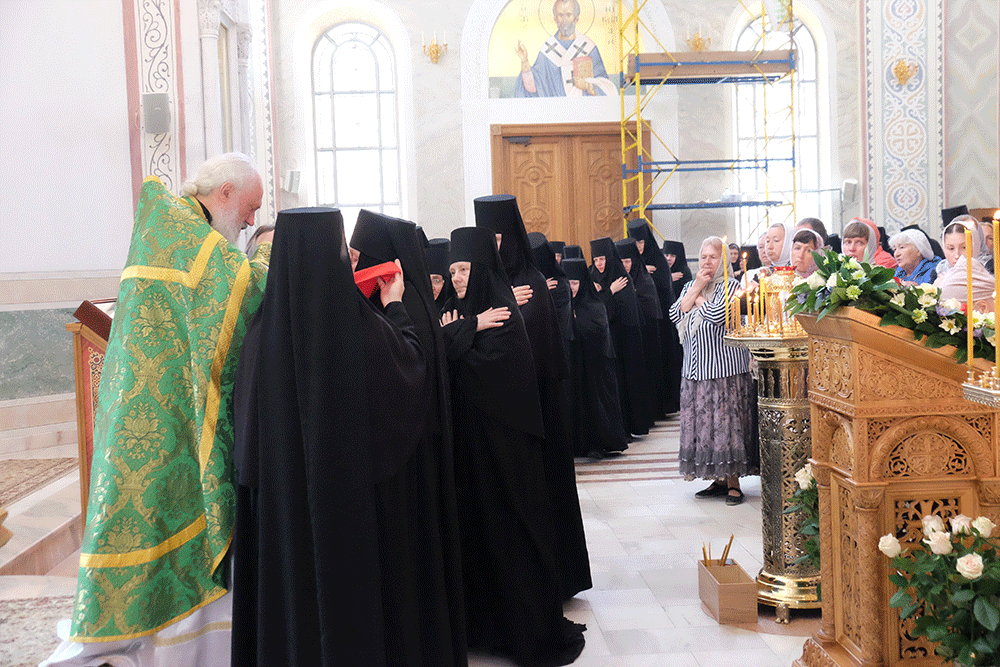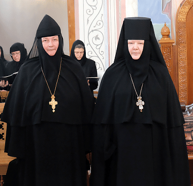 За богослужением молились настоятельница обители игумения Олимпиада (Баранова) с сестрами и воспитанницами монастырского детского пансиона, настоятельница Аносина Борисоглебского ставропигиального женского монастыря игумения Мария (Солодовникова) (бывшая насельница Хотькова монастыря) и гости обители.