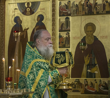 Накануне всенощное бдение совершил насельник обители преподобного Сергия архимандрит Макарий (Веретенников), профессор Московской духовной академии.
