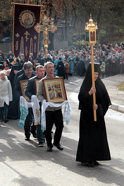 По окончании поздней Божественной литургии по традиции был отслужен молебен с крестным ходом вокруг монастыря. Впервые в истории монастыря Покровский крестный ход возглавили два архиерея, что придало особую торжественность празднику.