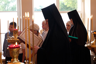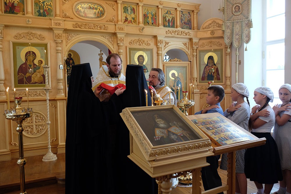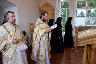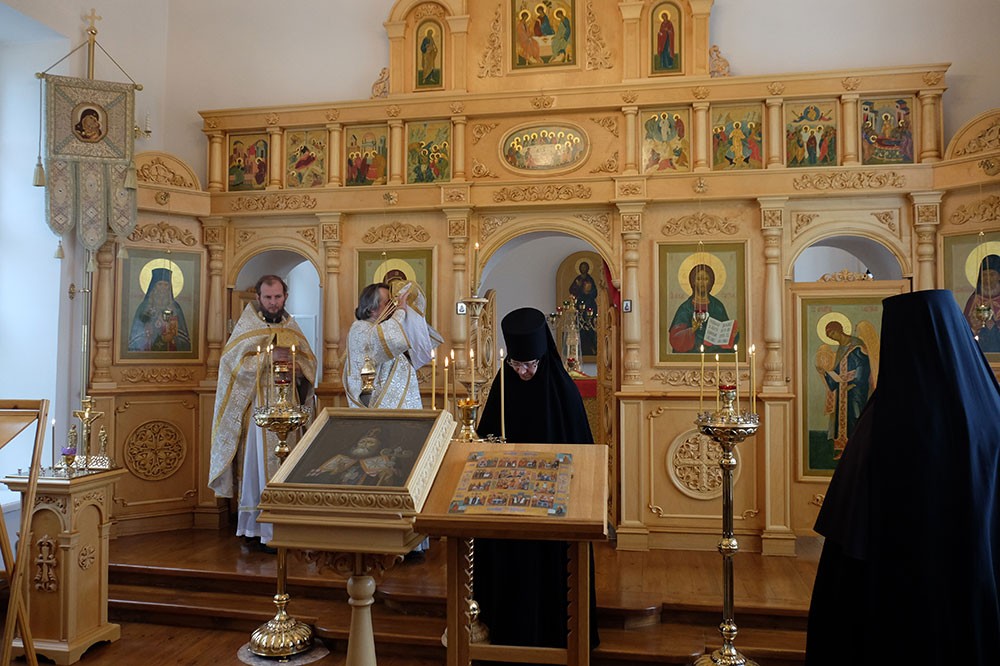 Ранняя Божественная литургия была совершена в храме свт. Митрофана, поздняя — в Покровском соборе монастыря.