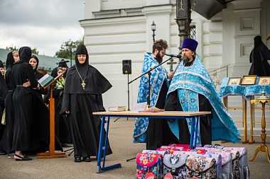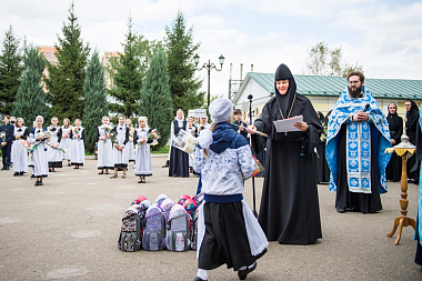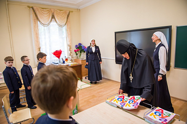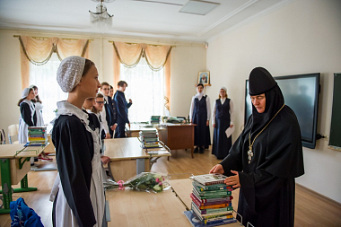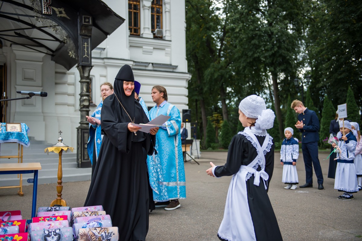Директор гимназии игумения Феофания (Мискина) поздравила учителей, ребят и их родителей с началом нового учебного года: