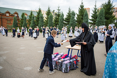 «Сердечно поздравляю вас с долгожданным праздником – Днем знаний! Первое сентября – теплый семейный праздник для всех нас. С особенной радостью мы встречаем самых маленьких учеников, которые только начинают свой школьный путь – наших первоклассников. В этом году их 15 человек! Приветствуем вас, дорогие ребята, особенно тепло молимся за вас и желаем успехов в учебе!