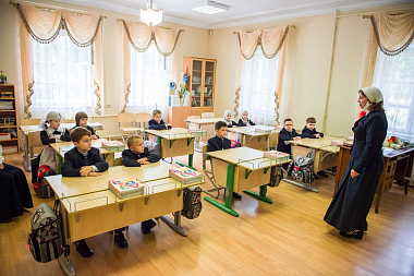 По традиции матушка Феофания пообщалась с ребятами и посетила их уроки.