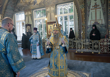 По окончании Литургии епископ Алексий передал игумении Викторине с сестрами, прихожанам и паломникам поздравление Святейшего Патриарха Московского и всея Руси Кирилла с престольным праздником обители и Первосвятительское благословение, после чего обратился к молящимся с архипастырским словом.