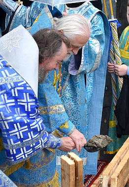 Молебное пение на закладке возглавили архиепископ Верейский Евгений и епископ Нарвский и Причудский Лазарь в сослужении монастырского священника игумена Самуила (Караска), а также настоятелей Раквереской Рождества Богородицы церкви протоиерея Александра Лебедева и Йыхвиской Богоявленской церкви протоиерея Андрея Суслова.
