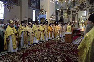 За богослужением молились настоятельница Пюхтицкого ставропигиального монастыря игумения Филарета (Калачева) с сестрами, многочисленные паломники и прихожане обители.