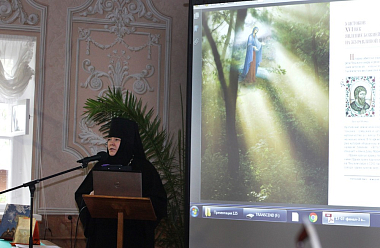 Открыла вечер настоятельница обители игумения Филарета (Калачева) презентацией нового монастырского издания-альбома «Обитель Божией Матери. 125 лет Пюхтицкому Успенскому ставропигиальному женскому монастырю». Это первая книга о Пюхтицком монастыре, полностью основанная на монастырской летописи и рассказывающая всю 125-летнюю историю обители.