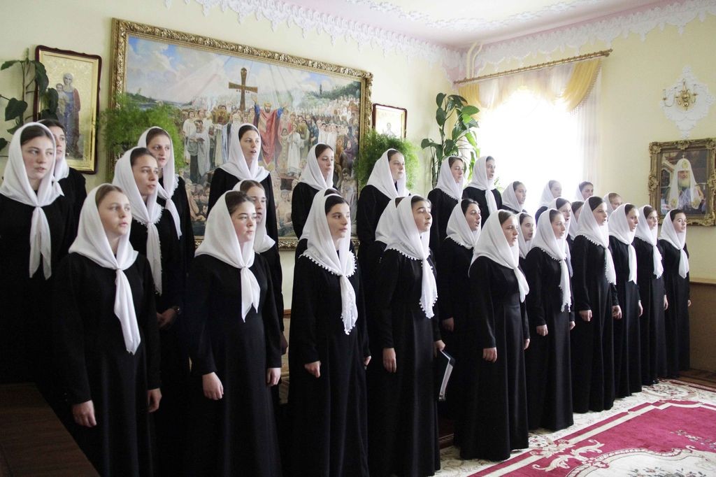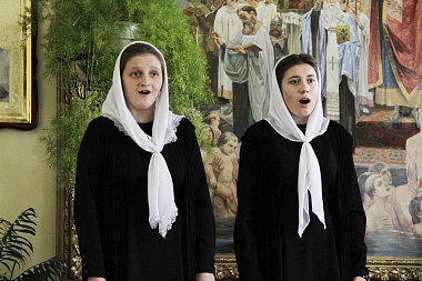 В завершение все участники торжества были приглашены на праздничный концерт духовной музыки в исполнении воспитанниц духовной школы под управлением завуча по музыкальным дисциплинам А.А. Одинца.
