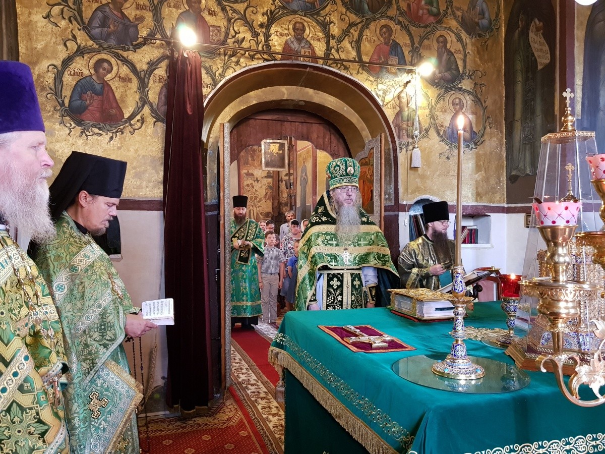 Затем праздничную Божественную литургию в монастырском соборе Рождества Пресвятой Богородицы совершил наместник обители архимандрит Савва (Фатеев) в сослужении братии монастыря и гостей в священном сане.