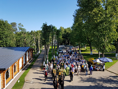 В этот день в скиту прп. Саввы Сторожевского в километре от монастыря были отслужены ранняя Божественная литургия и молебен с водосвятием, по окончании которого участники богослужения крестным ходом прошли из скита в обитель.