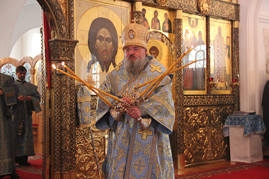 По окончании литургии Его Преосвященство поздравил настоятельницу монастыря игумению Сергию, всех сестер и паломников с праздником Владимирской иконы Пресвятой Богородицы. В своем слове владыка напомнил, что 6 июля – сугубый праздник Калужской земли. В этот день в 1480 году хан Золотой Орды Ахмат с громадными полчищами подошел уже к реке Угре, которую называют «поясом Богоматери», охраняющим московские владения. Целый день войска хана и Московского князя стояли друг против друга, не приступая к решительным действиям. Вся Москва молилась своей Заступнице Пресвятой Богородице о спасении православной столицы, и по Ее молитвам враги бежали, гонимые страхом. Матерь Божия – Царица Небесная и земная – неутомимо молится за всех нас, а мы будем непрестанно просить Ее о помощи и заступлении.