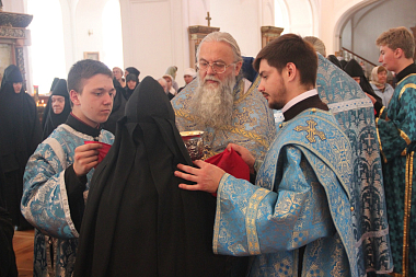 За богослужением молились настоятельница монастыря игумения Сергия (Щербакова), сестры и паломники обители.