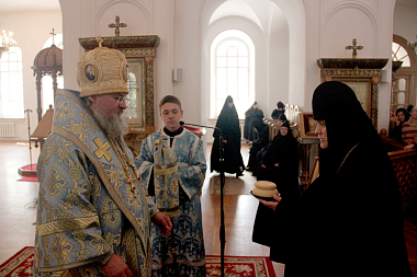 Поздравляя матушку Сергию с днем возведения в сан игумении, владыка подчеркнул, что игуменский крест нелегок, и особенно трудно быть настоятельницей в женском монастыре. Его Преосвященство пожелал матушке и сестрам, чтоб Царица Небесная была им Покровом и Предстательницей пред Престолом Божиим.