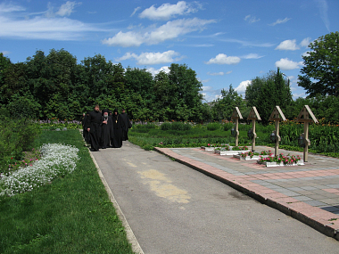 В завершение торжеств владыка Никита отслужил заупокойную литию на могилах настоятельниц Шамординской обители.