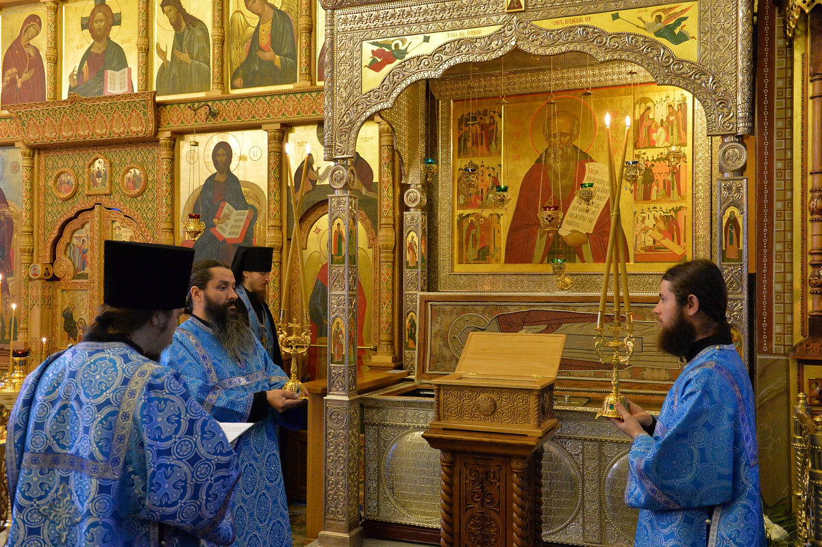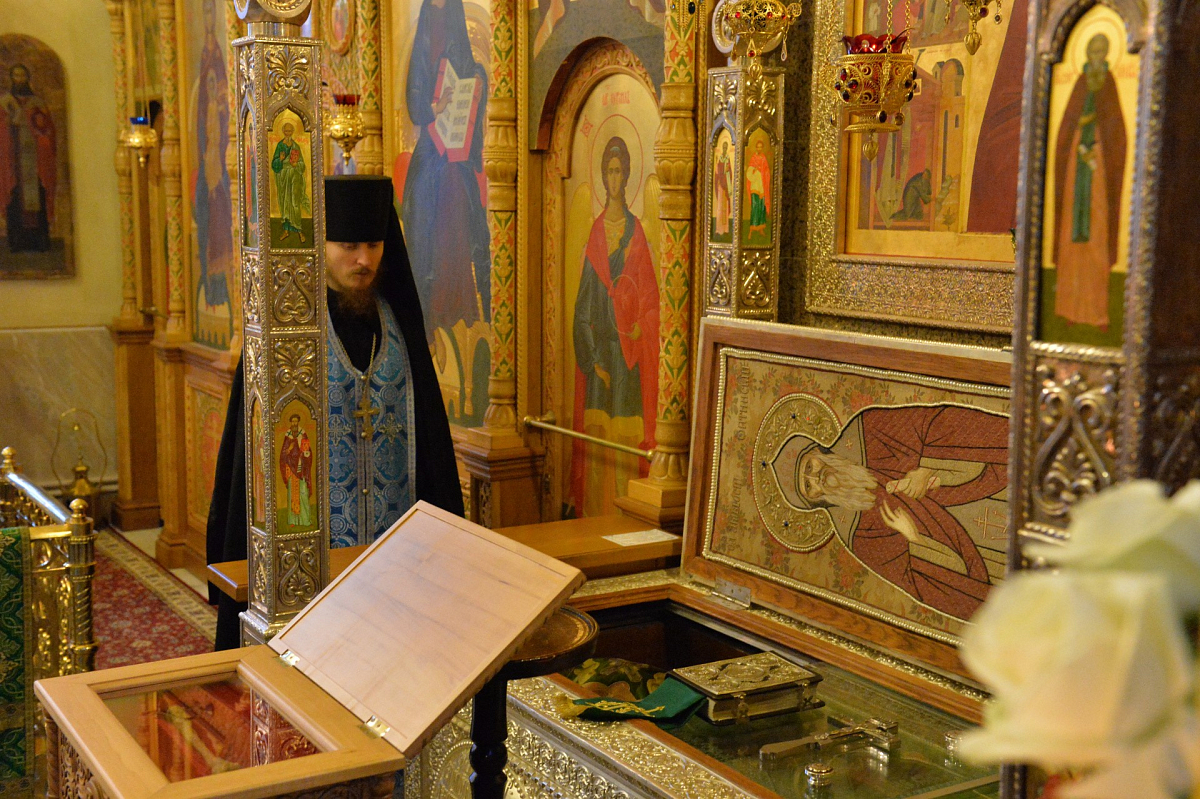 С крестным ходом под пение тропаря преподобному Амвросию его честные мощи были перенесены в Казанский собор, где был отслужен молебен святому старцу.