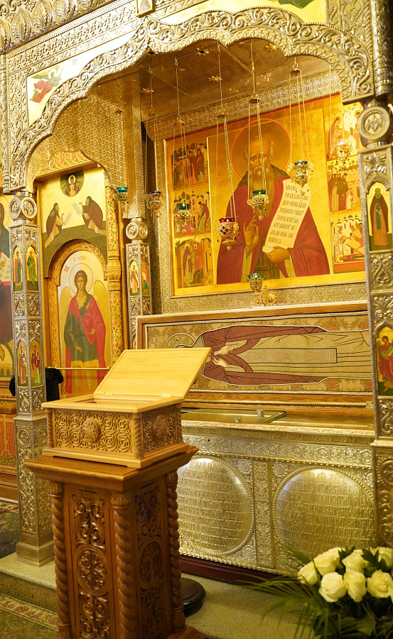 Ковчег со святыми мощами будет находиться в храме преподобного Амвросия Оптинского на том самом месте, где батюшка отошел ко Господу. Готовится сень, куда будут помещены мощи, чтобы все верующие имели возможность поклониться святыне. До этого времени ковчег будет пребывать в алтаре храма.
