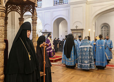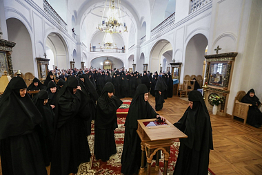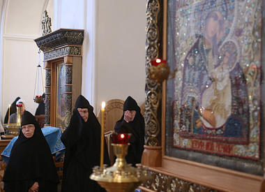 «Для нашего монастыря это сугубый праздник: в 1884 году, когда основывалась наша обитель, первый храм был освящен именно на праздник Покрова. В то время Преосвященный Владимир Калужский сказал, что он желает, чтобы Покров Пресвятой Богородицы пребывал над этой обителью, и это было очень символично.