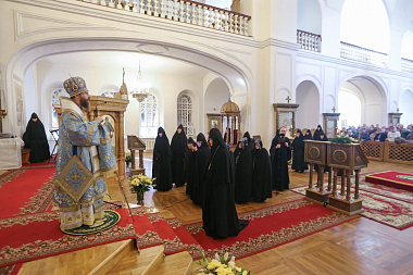 По окончании Литургии владыка произнес проповедь перед молящимися, в которой напомнил об истории праздника Покрова Пресвятой Богородицы. Его Преосвященство подчеркнул, что, находясь в монастыре, Покров Богородицы можно ощутить, только имея послушание и стараясь безропотно и с радостью исполнять волю Божию.
