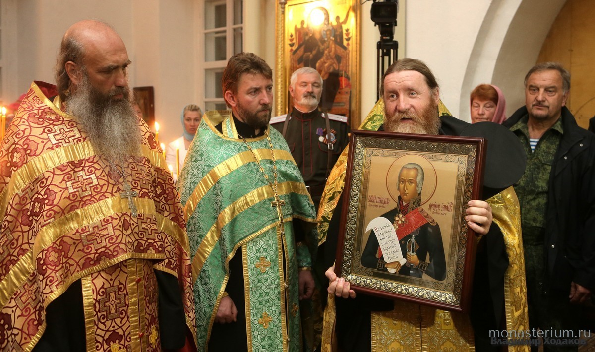 12 августа 2016 года в храме Всемилостивого Спаса, расположенном в скиту Данилова ставропигиального мужского монастыря в дер. Ново-Волково Рузского района Московской области, братия во главе со скитоначальником игуменом Михеем (Гулевским) торжественно встретили ковчег с мощами святого праведного Феодора Ушакова, адмирала Российского флота.