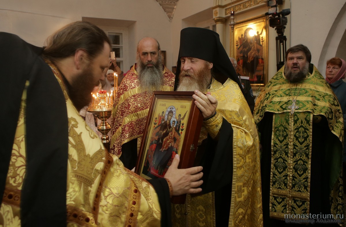 После молебна наместник Санаксарского монастыря подарил скиту икону святого праведного воина Феодора. В свою очередь, игумен Михей передал в дар от Данилова ставропигиального мужского монастыря Санаксарской обители чудотворный образ Божией Матери «Всецарица».
