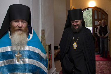 Его Высокопреподобию сослужили эконом Данилова монастыря игумен Иннокентий (Ольховой), насельники обители архимандрит Даниил (Воронин), игумен Михей (Гулевский), иеромонах Василий (Ильин) и клирик Патриаршего подворья в Переделкине игумен Антоний (Зеленчуков).
