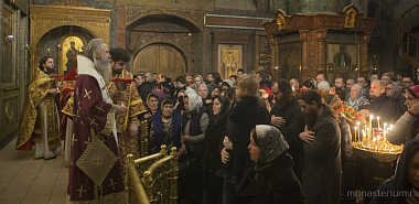 Раннюю Божественную литургию в монастырском соборе Сретения Владимирской иконы Божией Матери возглавил председатель Синодального отдела по монастырям и монашеству, наместник Свято-Троицкой Сергиевой лавры архиепископ Сергиево-Посадский Феогност.