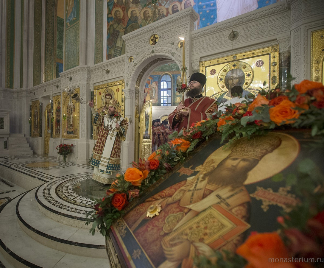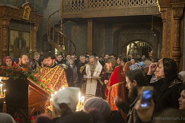 В завершение богослужения Его Преосвященство вместе со всеми собравшимися в храме совершил славление священномученику Илариону, архиепископу Верейскому, святые мощи которого пребывают в монастырском храме Воскресения Христова и Новомучеников и исповедников Церкви Русской.