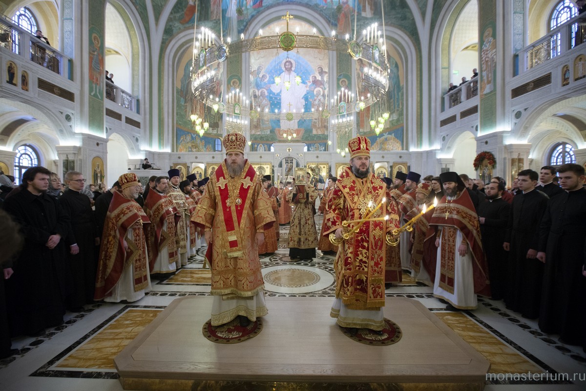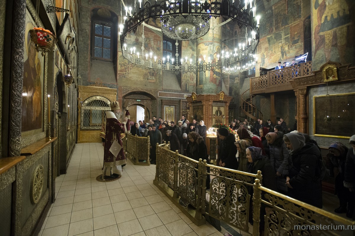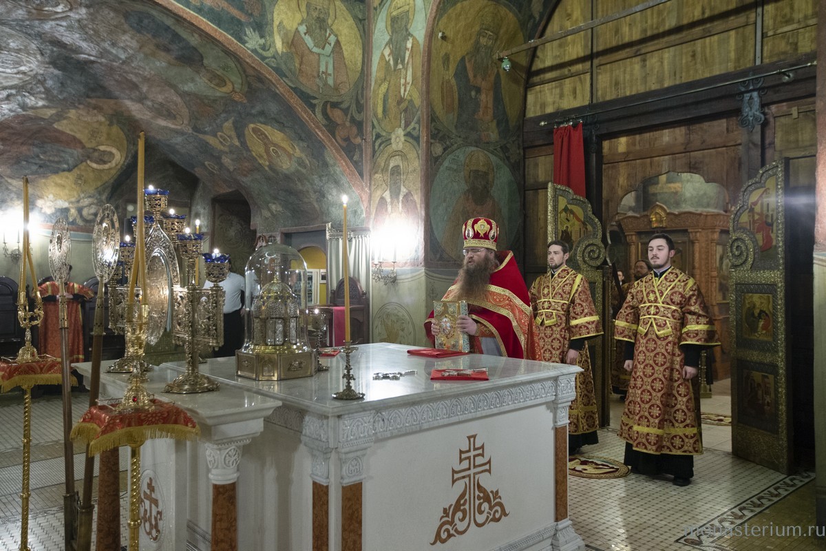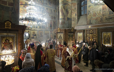 Раннюю Божественную литургию в монастырском соборе Сретения Владимирской иконы Божией Матери возглавил председатель Синодального отдела по монастырям и монашеству, наместник Свято-Троицкой Сергиевой лавры архиепископ Сергиево-Посадский Феогност.