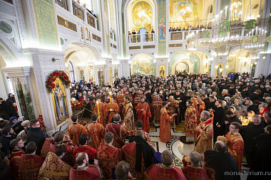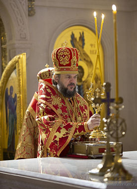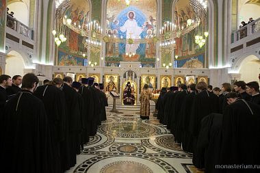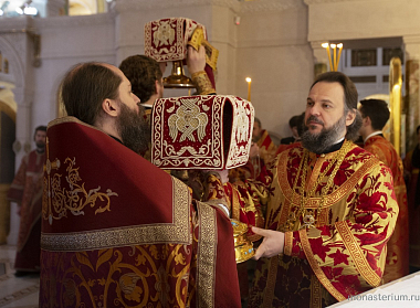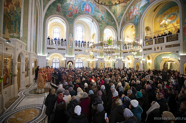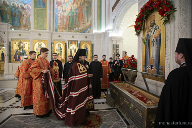 Его Высокопреосвященству сослужили заместитель председателя Синодального отдела по монастырям и монашеству архимандрит Стефан (Тараканов) и братия обители в священном сане.
