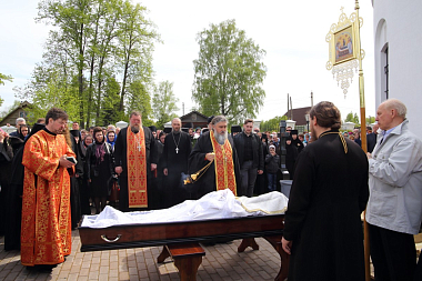 Перед началом отпевания архимандрит Стефан обратился к сестрам монастыря и богомольцам с кратким словом, призвав к сугубой молитве о новопреставленном: